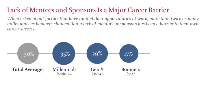 Mentorship came up in nearly every global conversation we had about helping women advance at work. A lack of mentors also was identified as a significant career barrier in our 2019 Leaders & Daughters Global Survey and was acutely felt by younger generations.