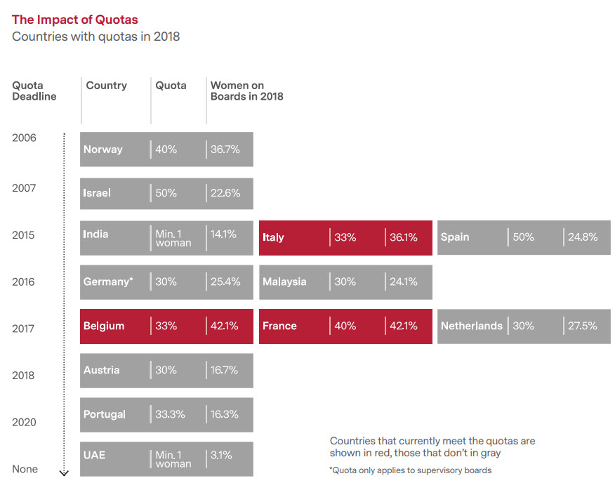 Wherever one stands on the idea of quotas, it is a fact that the most significant improvements over the last decade in board diversity have come in the countries that used regulation to get there.