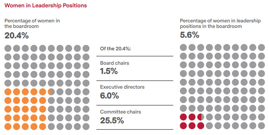 Overall, just 5.6 percent of all board seats are held by women in leadership roles.