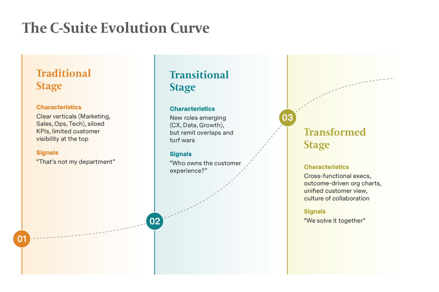 A leadership transformation is underway at the highest levels, swapping precise, silo-based roles for hybrid constructions. The goal: A C-Suite of collaborative, customer-obsessed leaders.